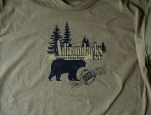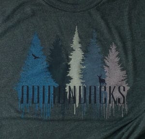 Simply Adirondacks. I hand screen print ‘Stencil‘ on a super soft tri-blend short sleeve tee. This is one terrific feeling shirt.