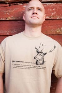 ‘Suffered by hunters normally 8 months out of the year, some cases are cured by predator hunting & fishing, others are simply incurable.’ ‘deer-pression‘ is always a customer favorite !
