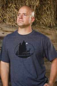 ‘peaceful easy feeling‘ shows a couple relaxing on a bench admiring their view of not only the lake & landscape in front of them, but a couple of deer in the distance too! Super soft tri blend tee is as comfortable as your favorite faded jeans!