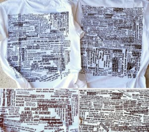 Actual headlines that I clipped & saved from those silly supermarket tabloids. Printed on a “super soft comfortable primo wonderful it’ll look gr8 with your jeans maybe wear a cap it’ll become your favorite shirt” kinda shirt!