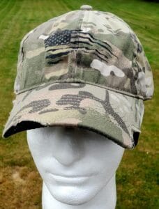 My ‘Camo Flag‘ hat has a faded Green Camo pattern with some distressed/frayed edges for a worn look & feel.