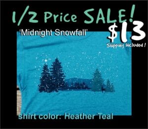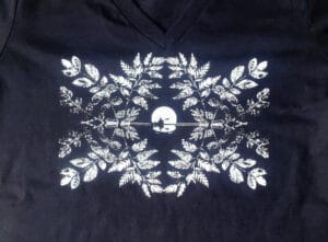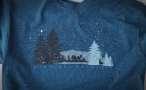 I now print my “Tall Pines” with a White faded/washed looking print, this gives the design a soft look.