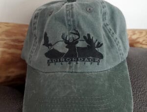 I hand screen print ‘Adirondack Wildlife‘ on a cotton garment washed cap that has an adjustable fabric closure buckle in back.