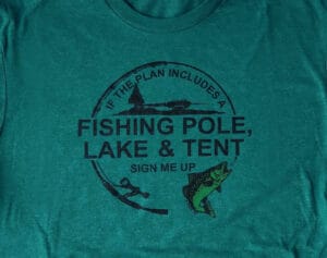 Ah yes, camping lakeside & fishing, sign me up if that’s ‘The Plan‘ ! 60% cotton, 40% poly. Super soft. Super comfy. I promise.