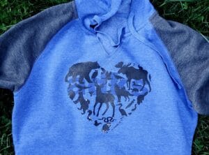 I hand screen print ‘Born to be Wild‘ on a super soft, comfy ladies lightweight 6.5-ounce fleece with a V neck.
